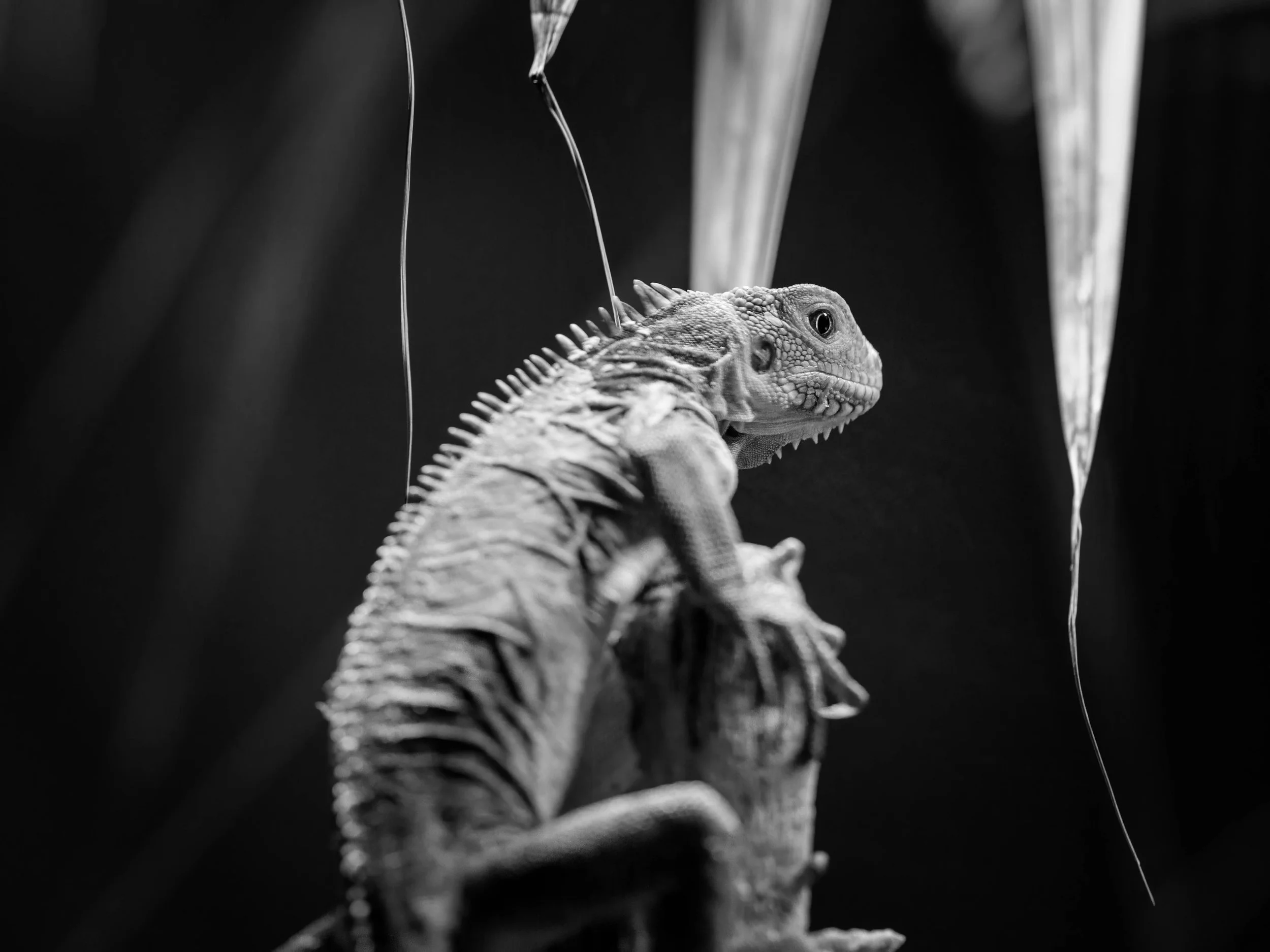 Monochrome conversion: Use red/orange channel lift to separate skin/scale tones; add grain if you want filmic texture.